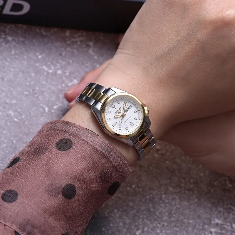 Trải qua rất nhiều thăng trầm cũng như thành tựu đáng kể: ra mắt đồng hồ đeo tay tự động đầu tiên và phát triển đồng hồ điện tử vào năm 1958, giới thiệu đồng hồ Grand Seiko với độ chính xác cao trở thành một huyền thoại - vượt qua các hãng đồng hồ cao cấp Thuỵ Sĩ cùng thời điểm. Cho đến nay, Seiko trở thành một thương hiệu toàn cầu với đa dạng các mẫu mã đồng hồ từ phổ thông cho tới xa xỉ và đắt đỏ.SRE004K1 là mẫu đồng hồ nữ rất được yêu thích trong bộ sưu tập Seiko 5 Sports. SRE004K1 khoác lên mình bộ cánh sang trọng với phần vỏ case và dây đeo mạ demi. Dial của SRE004K1 mang đậm chất thể thao dù vẫn nhận được những tinh chỉnh để phù hợp với phái nữ, với những chi tiết như bộ kim và cọc số to bản, phủ dạ quang rất sáng. Biểu tượng của dòng sản phẩm được đặt bên dưới logo góc 12h trong khi lịch thứ và ngày nằm tại góc 3h quen thuộc.