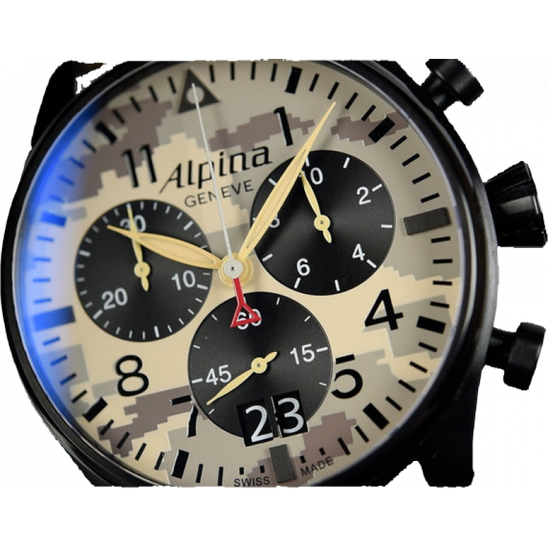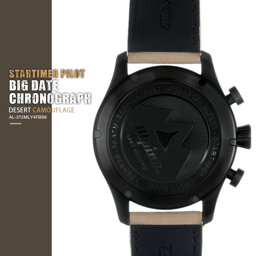 Để tăng sự phong phú cho bộ sưu tập Startimer, nhà Alpina với những ý tưởng sáng tạo vô hạn của mình, đã tái hiện lại hơi thở của lịch sử qua model AL-372MLY4FBS6 Startimer Pilot Big Date Chronograph. Model này ra đời với quyết tâm ngự trị trái tim của những tín đồ mê đồng hồ quân đội, những tay chơi yêu thích phong cách nam tính, mạnh mẽ và mang sắc màu của chiến thắng. Phiên bản đặc biệt này chỉ sản xuất 100 chiếc trên toàn thế giới, trong đó có 5 chiếc được bán ra tại Vương Quốc Anh, nên việc sở hữu nó có phần hề không dễ dàng.