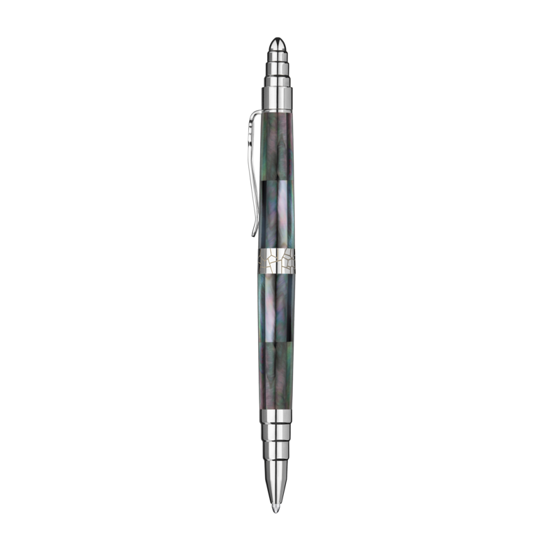 - Vẻ đẹp độc đáo và quý phái: Điểm nhấn nổi bật của chiếc bút nằm ở chất liệu ngọc trai đen Tahiti. Loại ngọc trai này được mệnh danh là "Nữ hoàng của ngọc trai" bởi vẻ đẹp huyền bí, ánh sắc lung linh và giá trị cao. Sự kết hợp hài hòa với lớp mạ vàng trắng càng làm tăng thêm vẻ sang trọng cho chiếc bút, thu hút mọi ánh nhìn.
