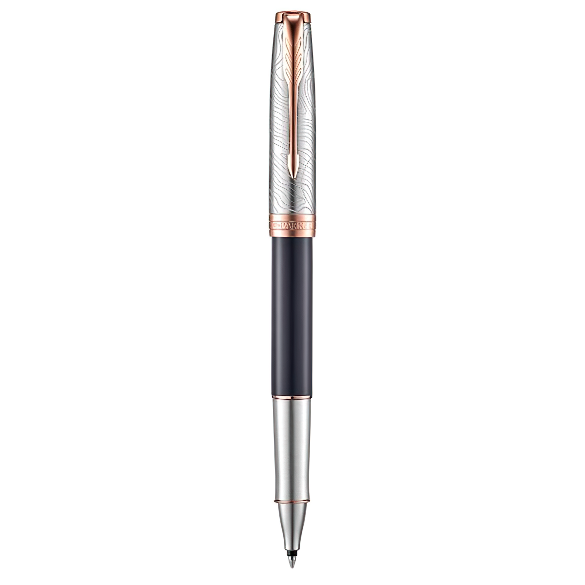 Bút lông bi SON SE18 Đ-G PGT GB-2054828 (mực xanh) là một trong những sản phẩm được yêu thích nhất của bộ sưu tập Sonnet. Điểm nhấn của bút nằm ở thiết kế đan xen giữa sắc đen và bạc sang trọng, đặc biệt, phần nắp bút được chạm khắc hoa văn lượn sóng tinh tế cùng giắc cài mũi tên mạ vàng 18K đặc trưng của Parker.