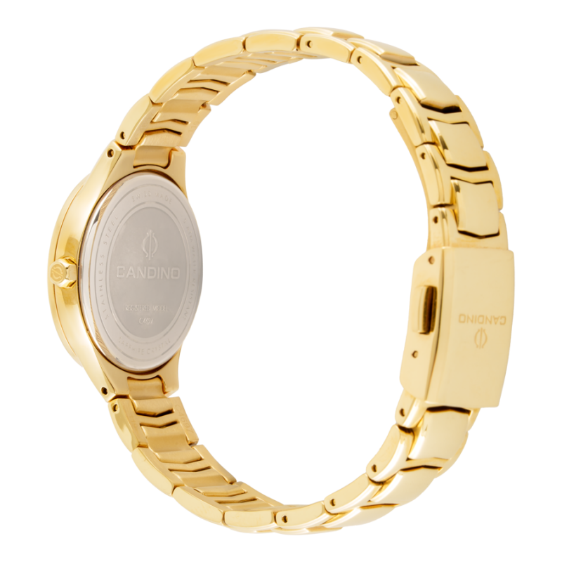 Đồng hồ nữ Candino C4697/1 ra đời nhằm hướng tới đối tượng là những quý cô yêu thích phong cách thời trang hiện đại. Mặt số sở hữu thiết kế vô cùng đặc biệt được tạo nên bởi vô số viên đá cao cấp tạo hiệu ứng lấp lánh trên cổ tay quý cô, càng thêm phần nổi bật khi được bao phủ bởi màu vàng kim sang trọng, bắt mắt nhờ công nghệ mạ PVD cao cấp. Trái tim của C4697/1 là bộ máy Quartz Swiss Made bền bỉ, mặt kính sử dụng đá sapphire chống xước, đường kính mặt nhỏ gọn 30mm hứa hẹn sẽ phù hợp với mọi kích thước cổ tay. Bộ khung vỏ của sản phẩm sử dụng chất liệu thép không gỉ 316L cho đồng hồ sáng bóng theo thời gian, đây còn là chất liệu thép thường được dùng trong sản xuất dụng cụ y tế nên rất lành tính và không gây kích ứng cho làn da. Mức độ chịu nước 5ATM hỗ trợ chủ nhân trong các hoạt động hằng ngày như rửa tay, đi mưa mà không lo nước tràn vào đồng hồ.