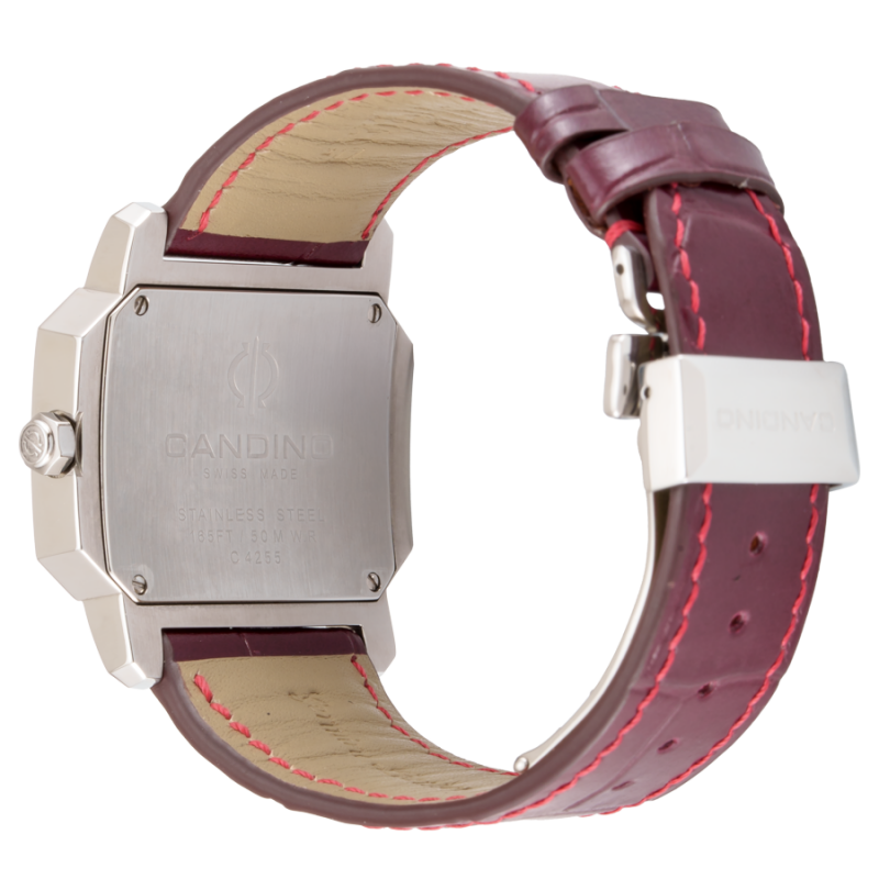 Nằm trong BST các mẫu đồng hồ thời trang dành cho quý cô, đồng hồ nữ Candino C4255/2 sở hữu thiết kế độc đáo và lạ mắt với khung mặt hình chữ nhật nằm và đường kính mặt số tương đối lớn cùng chất liệu dây da trẻ trung, hiện đại Khung vỏ sử dụng thép không gỉ 316L cho ra màu trắng bạc sáng bóng, kết hợp cùng nền mặt số màu khảm trai hồng nổi bật mang đến sự trẻ trung và nữ tính cho quý cô khi lên tay chiếc đồng hồ này. Viền đồng hồ được tô điểm với những viên đá cao cấp, tạo hiệu ứng lấp lánh khi lên tay cho chủ nhân thêm phần sang trọng. Sản phẩm được đánh giá là phù hợp với các nàng yêu thích phong cách cá tính. Sử dụng chất liệu kính chịu lực giữ chống va đập cùng bộ máy Quartz Swiss Made, C4255/2 hứa hẹn sẽ là người bạn đồng hành cùng chủ nhân qua năm tháng. Mức độ chịu nước 3ATM hỗ trợ quý cô trong các hoạt động hàng ngày như rửa tay, đi mưa.
