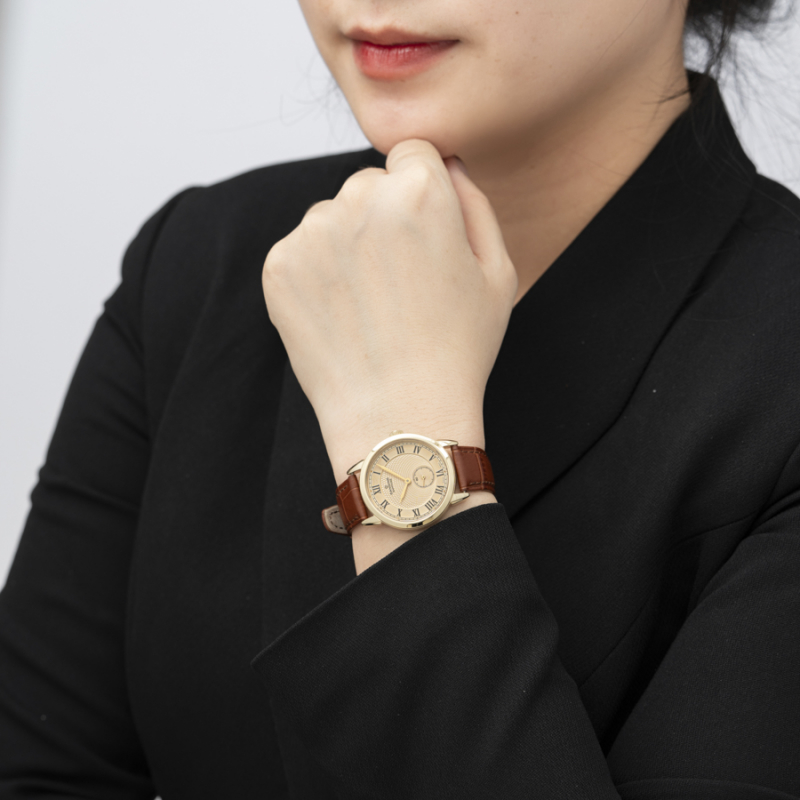 Đồng hồ nam Candino C4594/4 sở hữu phong cách đơn giản nhưng không kém phần sang trọng với màu vàng kim bao phủ toàn bộ phần mặt số, kết hợp vô cùng hài hòa với sắc nâu của dây da mang lại vẻ lịch lãm cho người đeo. Thiết kế mặt số mang hơi hướng cổ điển khi sử dụng cọc số La Mã, bộ kim Dauphine và chi tiết vân dạng lưới Guilloche vô cùng nổi bật và tinh tế. Bộ khung vỏ sử dụng chất liệu thép không gỉ 316L sáng bóng theo thời gian và không gây kích ứng cho da tay. Mức độ chịu nước 5ATM khiến chủ nhân an tâm rửa tay, đi mưa mà không lo nước vào đồng hồ. Trái tim của đồng hồ là bộ máy thạch anh hoạt động chính xác, bền b và mặt kính sapphire có khả năng chống xước, C4594/4 hứa hẹn sẽ là người bạn đồng hành cùng quý ông qua năm tháng.