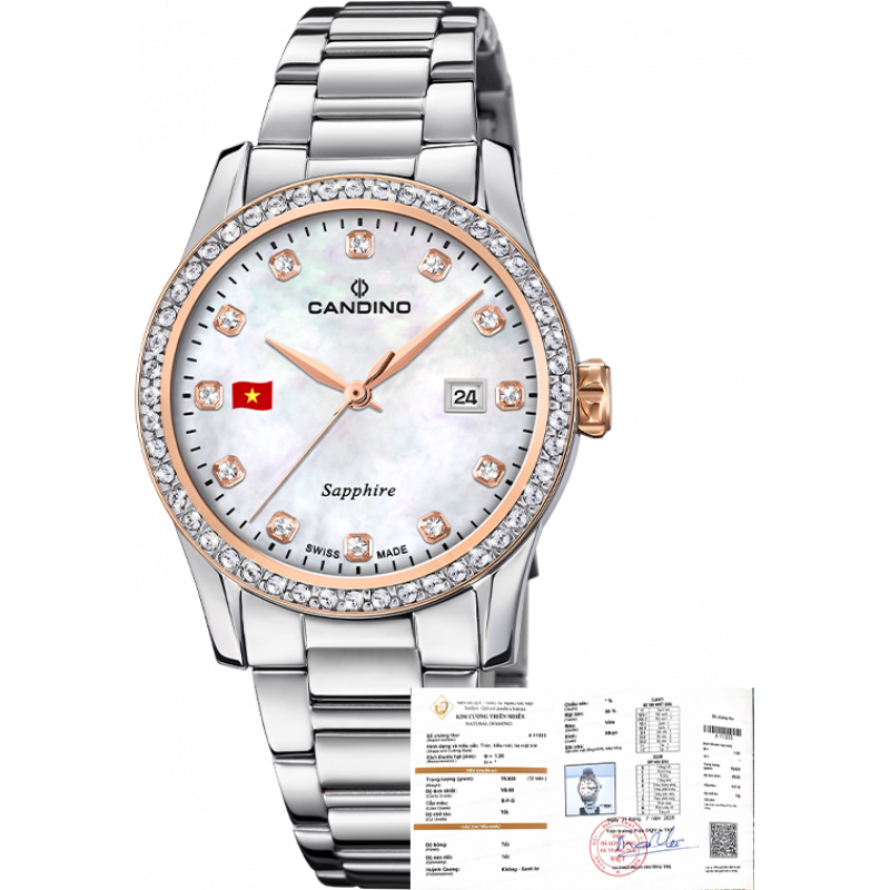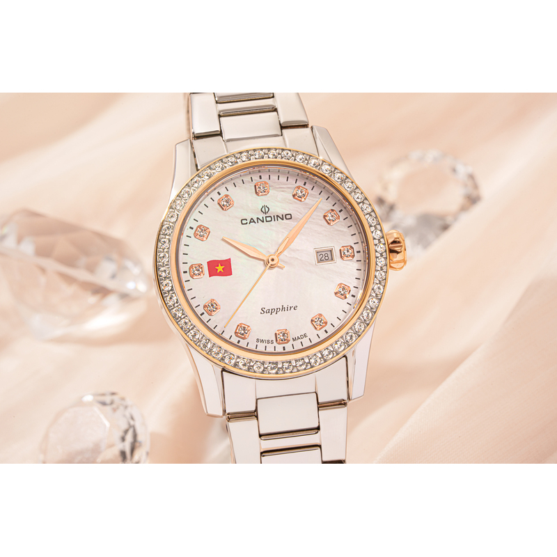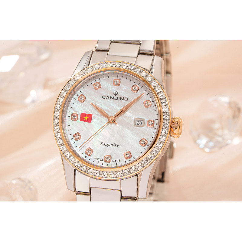 - Dấu ấn của sự thanh lịch và gu thẩm mỹ tinh tế: Phụ nữ hiện đại luôn biết cách chọn lựa những gì thực sự phù hợp với mình, không chạy theo trào lưu mà đề cao sự tinh tế và độc đáo. Candino C4741/VK01 với thiết kế thanh mảnh, mặt số khảm trai lấp lánh và điểm nhấn là quốc kỳ Việt Nam ở góc 9 giờ, chính là biểu tượng của gu thẩm mỹ vượt thời gian. Chiếc đồng hồ này nhẹ nhàng ôm lấy cổ tay, không phô trương nhưng đủ sức thu hút mọi ánh nhìn, thể hiện sự am hiểu về cái đẹp và trân trọng những giá trị cốt lõi. Đây là món phụ kiện hoàn hảo giúp nàng tự tin tỏa sáng trong mọi hoàn cảnh, từ cuộc họp quan trọng đến buổi tiệc sang trọng hay những khoảnh khắc đời thường đầy ý nghĩa. Nét đẹp tự nhiên, không cần tô vẽ, ẩn chứa chiều sâu và sự thanh lịch đích thực sẽ được Candino C4741/VK01 tô điểm một cách hoàn hảo.