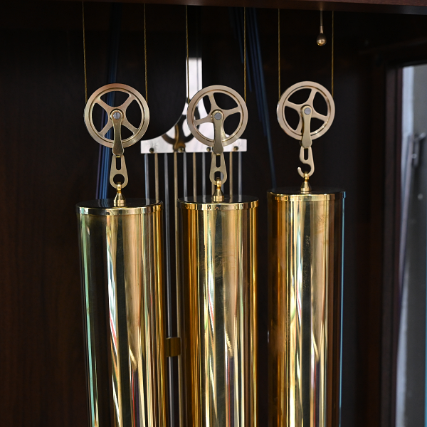 - Vỏ được làm từ gỗ nguyên khối. - Vỏ màu gỗ óc chó được làm từ gỗ trăn hoặc gỗ thích nguyên khối và được đánh bóng thành màu gỗ óc chó. - Kính ở cạnh bên. - Mức độ chịu cót là 8 ngày. - 3 kiểu nhạc chuông (Westminster, Whittington, St. Michael) với chứ |