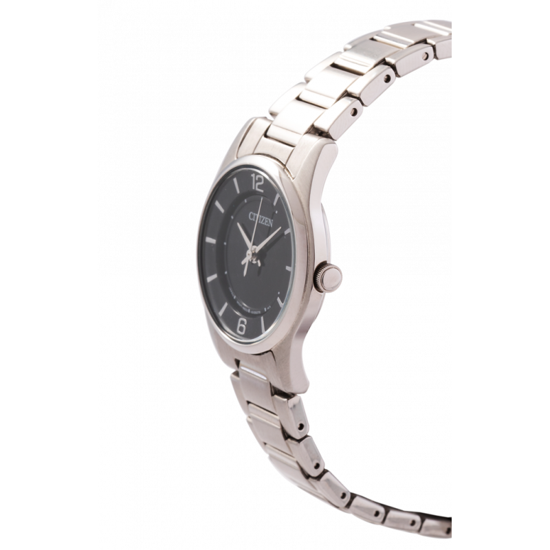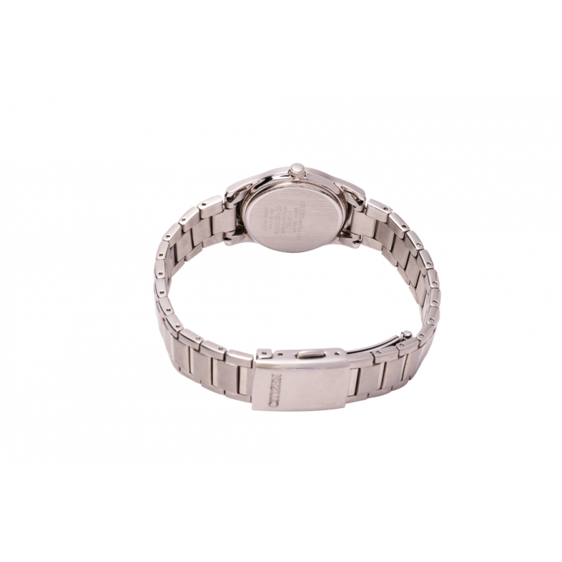 Tính thanh lịch được thể hiện qua sự nhẹ nhàng uyển chuyển của đường nét nhiều hơn là dựa vào các họa tiết trang trí và chất liệu quý hiếm. Đồng hồ ER0180.54E cũng mang trong mình vẻ đẹp vượt thời gian bởi chính sự đơn giản sẽ khiến những chiếc đồng hồ không bao giờ bị lỗi mode. Sử dụng tone màu trắng làm chủ đạo trên nền thép không gỉ 316L, kết hợp với mặt màu đen mang đến sự thanh lịch và ấn tượng. Sự đơn giản của ER0180.54E đến từ bên trong lẫn bên ngoài. Thiết kế bộ kim Leaf và cọc số vạch với tạo hình thanh mảnh giúp đồng hồ thanh thoát hơn. Nổi bật nhất phải kể đến số 6 và số 12 có thiết kế số học trò cùng với vòng tròn lớn trên mặt giúp đồng hồ có điểm nhấn rõ nét. Bảo vệ khu vực mặt số là lớp kính cứng hình tròn với đường kính chỉ 27mm luôn vừa vặn với kích thước cổ tay của phụ nữ Việt. Trái tim của đồng hồ là bộ chuyển động thạch anh với cơ chế hoạt động bền bỉ, chính xác. Kết hợp với chất liệu thép không gỉ, Citizen còn trang bị cho ER0180.54E mức độ chống nước 3 ATM. Ở mức độ này đồng hồ của bạn có thể sử dụng trong các hoạt động sinh hoạt hàng ngày như rửa tay nhẹ nhàng.