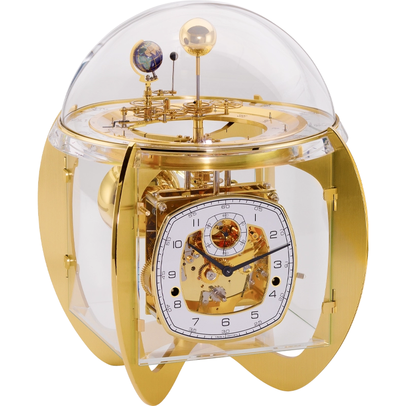 Mẫu đồng hồ để bàn Hermle 23002-000352 mang một vẻ ngoài ấn tượng với thiết kế lộ cơ và bộ máy phức hợp trên đỉnh chóp tái hiện lại quỹ đạo hoạt động của Trái đất và lịch mặt trăng. Các nét cổ điển và hiện đại được kết hợp hài hoà trong mẫu đồng hồ này khiến cho Hermle 23002-000352 có thể phù hợp với các không gian sang trọng, đẳng cấp nhưng không cảm thấy quá nhàm chán mà vẫn hài hoà, tinh tế.