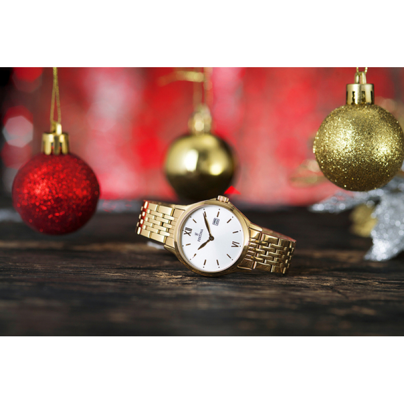Tính thanh lịch được thể hiện qua sự nhẹ nhàng uyển chuyển của đường nét nhiều hơn là dựa vào các họa tiết trang trí và chất liệu quý hiếm. Đồng hồ F16749/2 cũng vậy, mang trong mình vẻ đẹp vượt thời gian bởi chính sự đơn giản sẽ khiến những chiếc đồng hồ không bao giờ bị lỗi mode. Phủ lên mình lớp mạ PVD màu vàng sáng bóng trên nền thép không gỉ 316L kết hợp cùng mặt dial màu trắng mang đến sự độc đáo và ấn tượng. Sự đơn giản của F16749/2 đến từ bên trong lẫn bên ngoài, chi tiết lược bỏ kim giây cùng thiết kế bộ kim Leaf và cọc số kết hợp dạng vạch - số Arab, với tạo hình thanh mảnh giúp đồng hồ thanh thoát và có chiều sâu hơn. Mẫu đồng hồ chỉ đơn giản với chức năng xem ngày và giờ không hề gây nhàm chán mà ngược lại, bạn sẽ luôn bị cuốn hút theo từng nhịp chạy, ẩn chứa chút gì đó bí ẩn thôi thúc người ta khám phá. Cửa sổ thông báo lịch ngày được đặt tại vị trí 3 giờ quen thuộc với thiết kế viền mạ màu đen cùng tone với bộ logo và tên thương hiệu được đặt tại hướng 12 giờ. Bảo vệ khu vực mặt số là lớp kính cứng hình tròn với đường kính 30mm luôn vừa vặn với kích thước cổ tay của phụ nữ Á Đông. Trái tim của đồng hồ là bộ chuyển động thạch anh với cơ chế hoạt động bền bỉ, chính xác. Kết hợp với chất liệu kim loại, Festina còn trang bị cho F16749/2 mức độ chống nước lên tới 5 ATM, ở mức độ này đồng hồ của bạn có thể sử dụng trong các hoạt động sinh hoạt hàng ngày như rửa tay hay đi mưa.