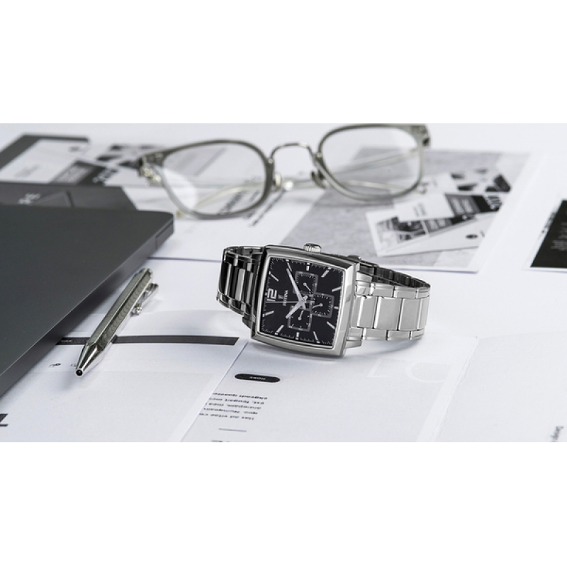 Đồng hồ Festina F16783/3 là một trong những mẫu Multifunction nổi tiếng bán chạy nhất của hãng, mang trong mình hơi thở thiết kế thể thao nhiều chức năng và mạnh mẽ. Không bị nhàm chán bởi thiết kế mặt tròn cổ điển, F16783/3 sở hữu ngoại hình cực kỳ nam tính với thiết kế mặt vuông sắc nét. Nổi bật trên nền mặt số màu đen là bộ kim và cọc số màu trắng được thiết kế thanh mảnh cùng phần vành mạ sáng bóng tạo điểm nhấn rõ nét cho đồng hồ. Trên mặt đồng hồ có 3 đồng hồ nhỏ hiển thị nhiều chức năng đặc biệt. Tại góc 3 giờ là hiển thị lịch ngày đối xứng với lịch thứ tại vị trí 9 giờ với vòng tròn đen xám thu hút. Cuối cùng là góc 6 giờ hiển thị chức năng 24 giờ giúp người sử dụng dễ dàng sắp xếp công việc cá nhân. Với thiết kế độc đáo hướng tới người dùng nên phần nào đã mang tới những trải nghiệm mới lạ khi sử dụng.