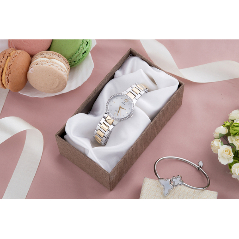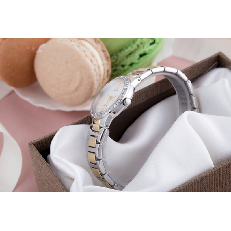 Ấn tượng và tinh tế, sang trọng và nổi bật, đó là những cảm nhận đầu tiên của các quý cô khi được chiêm ngưỡng mẫu đồng hồ F20241/1. Nằm trong bộ sưu tập Only for Ladies với những mẫu sản phẩm vô cùng nữ tính, không quá ngạc nhiên khi F20241/1 được đại đa số phái đẹp bình chọn “yêu ngay từ cái nhìn đầu tiên”. Gây ấn tượng đặc biệt là thiết kế kết hợp với đá Swarovski được phủ kín từ viền ngoài cho tới bên trong mặt số giúp cổ tay của phái đẹp luôn phát ra thứ ánh sáng huyền diệu. Trên nền dial trắng bạc, bộ kim Dauphine màu vàng sắc nét cùng cọc số kết hợp dạng vạch - số Arab tại các vị trí chủ chốt như 3, 6, 9 và 12 giờ, các mốc giờ còn lại được đính đá nhỏ xinh nhằm tạo độ thông thoáng cho khu vực mặt số. Dây đeo của đồng hồ có thiết kế demi cá tính theo công nghệ mạ màu vàng cao cấp PVD kèm theo bộ khóa bấm thuận tiện và an toàn. Festina sử dụng hoàn toàn chất liệu thép không gỉ 316L trong chế tác giúp phần khung vỏ và bộ dây giữ được độ sáng bóng, bền đẹp của sản phẩm theo thời gian. Đặc biệt, loại nguyên liệu này không gây kích ứng da tay, kể cả với những làn da nhạy cảm nhất. Sở hữu đường kính 28.5mm nhỏ xinh phù hợp với mọi cổ tay người phụ nữ Á Đông cùng độ chịu nước lên tới 50M giúp nàng thoải mái trong những sinh hoạt thường ngày. Trái tim của F20241/1 chính là bộ máy Quartz bền bỉ và được bảo hành 2 năm quốc tế.