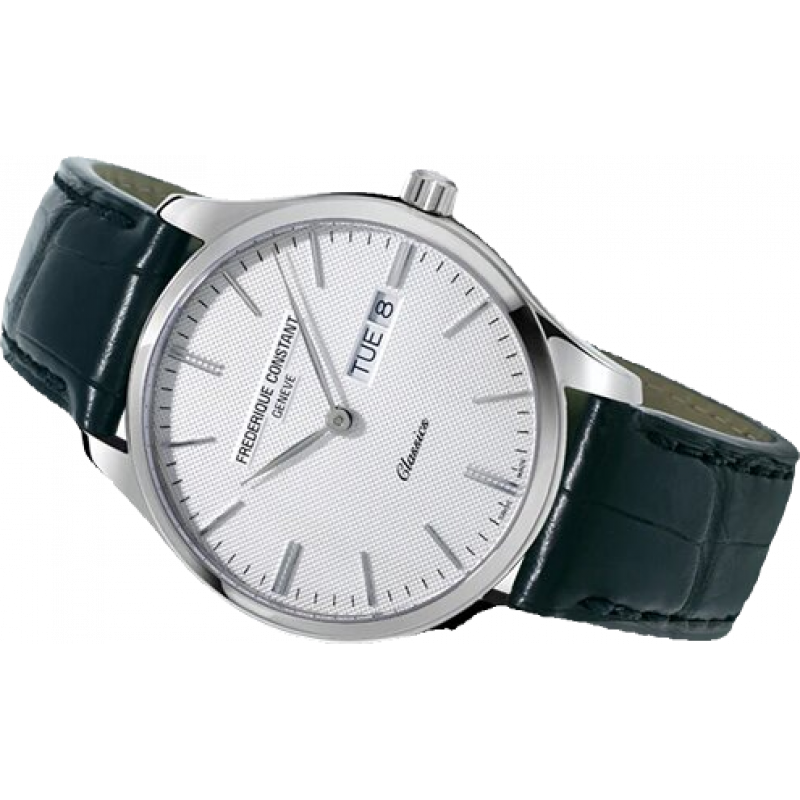 Thiết kế mặt số tròn khá đơn giản tông màu trắng tuyền vân Guilloche theo phong cách hoạ tiết Clous De Paris. Dễ dàng nhận thấy sự khác biệt tại các mốc 3, 6, 9 và 12 giờ so với các mốc giờ còn lại thể hiện sự khỏe khoắn và mạnh mẽ của quý ông thời hiện đại. Cửa sổ lịch ngày và thứ được đặt tại vị trí 3 giờ quen thuộc, thuận tiện khi theo dõi. Dòng chữ Frederique Constant Geneve được đặt ngay dưới vị trí 12 giờ như một niềm kiêu hãnh của thương hiệu.