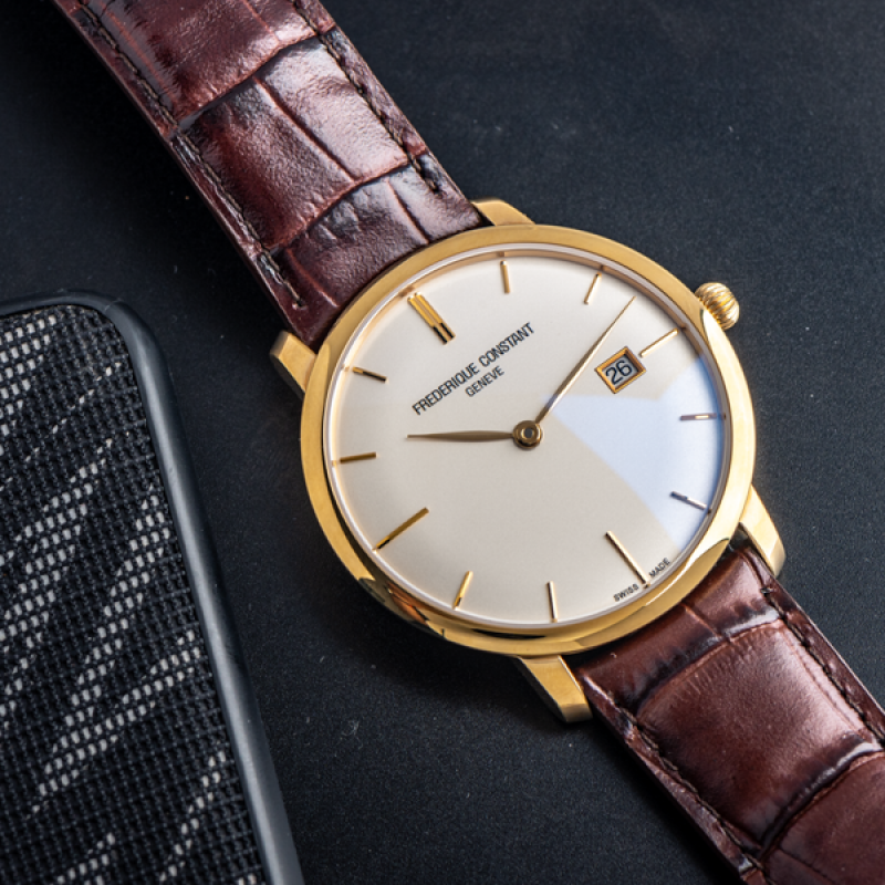 Nếu phải tìm kiếm một chiếc dresswatch cho các quý ông thì bộ sưu tập Slimline của Frederique Constant xứng đáng được xếp vào những lựa chọn hoàn hảo nhất nhờ vào thiết kế mỏng, nhẹ, thanh lịch cùng chất lượng hoàn thiện tuyệt vời.