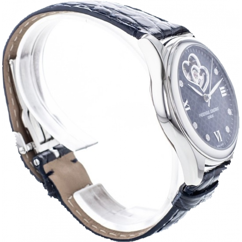 Đồng hồ Nữ Frederique Constant FC-310NDHB3B6 sở hữu bộ vỏ chế tác từ thép không gỉ 316L, kết hợp với dây đeo chế tác từ da cá sấu cao cấp, mang màu xanh bắt mắt cùng tông với dial.