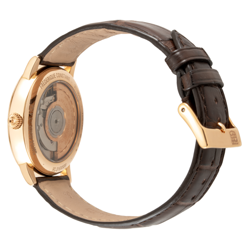 Điểm đáng giá nhất trên mẫu đồng hồ này tới từ bộ vỏ. Phần vành vỏ của FC-316V5B9 được chế tác từ vàng hồng nguyên khối 18k, được đánh bóng mịn màng, không chỉ mang lại diện mạo sang trọng mà còn đảm bảo tính thẩm mỹ, hạn chế hoàn toàn hiện tượng bay màu thường thấy trên các sản phẩm sử dụng phương pháp mạ. Với chất liệu cao cấp như vậy, rõ ràng FC-316V5B9 không phải là một chiếc đồng hồ dành cho số đông và chỉ những tay chơi thực thụ, những khách hàng đẳng cấp mới có thể sở hữu cỗ máy hoàn hảo này.