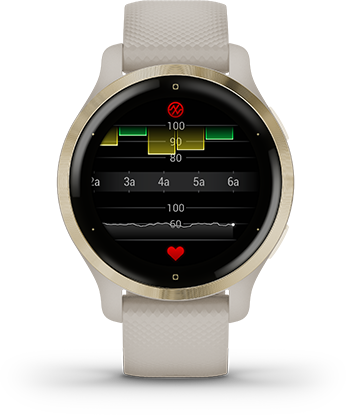 Nhanh chóng kết nối đồng bộ với cơ thể bạn chỉ với 2 phút để ghi lại các số liệu thống kê chính, bao gồm nhịp tim, thay đổi nhịp tim, Pulse Ox, hô hấp và mức căng thẳng. Từ đó đưa ra thống kê báo cáo chi tiết về các chỉ số thể chất thông qua ứng dụng Garmin Connect trên điện thoại thông minh tương thích.