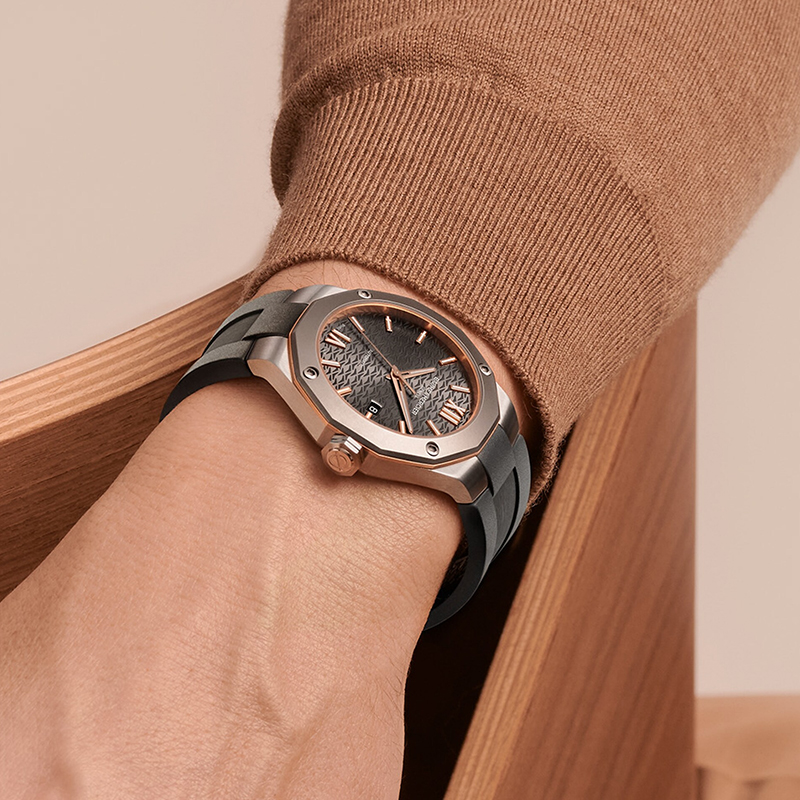 Thuộc bộ sưu tập Riviera chủ đạo của Baume & Mercier, chiếc đồng hồ nam M0A10660 sở hữu lối thiết kế mang đặc trưng của thương hiệu với phần vỏ Dodecagon, 12 cạnh vỏ cắt vát sắc nét cùng 4 đinh ở các góc kết hợp bộ dây đeo cao su mang đến phong cách trẻ trung, thời thượng.