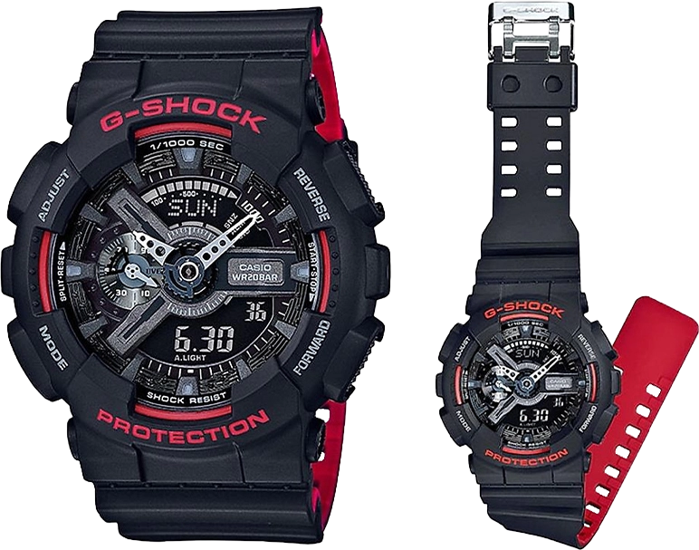 Đến từ BST G-SHOCK, và nằm trong dòng sản phẩm Black & Red đặc biệt, GA-110HR-1ADR sở hữu vẻ ngoài nổi bật và bắt mắt với sự đan xen giữa hai sắc đỏ - đen.
