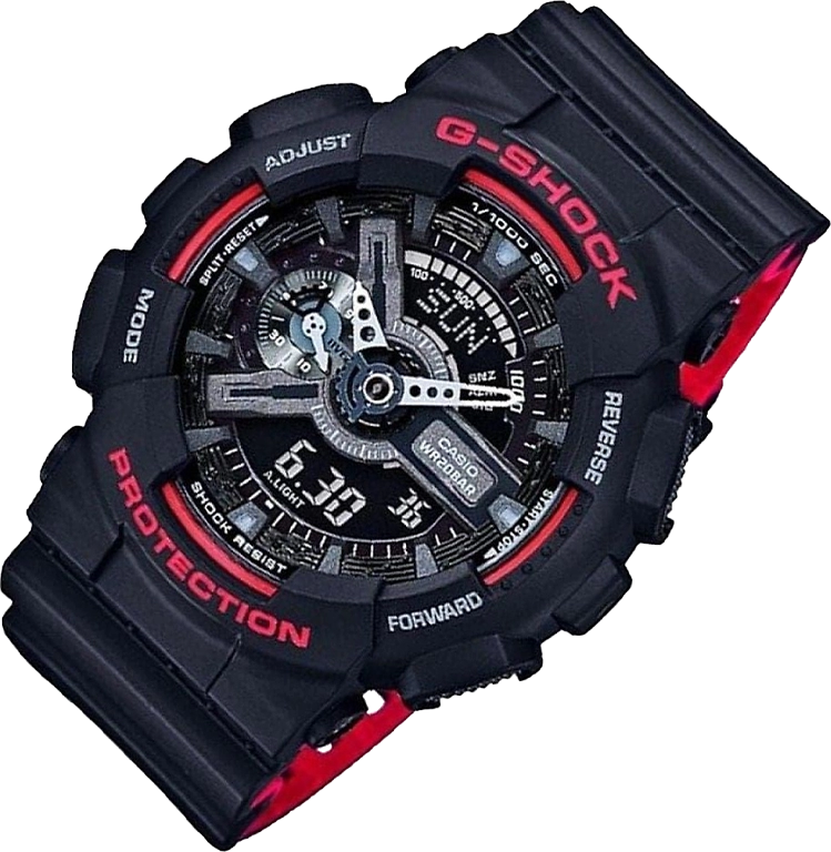 Về trang bị an toàn, bên cạnh cơ chế chống shock trứ danh của dòng sản phẩm G-SHOCK, GA-110HR-1ADR còn được Casio trang bị khả năng chịu nước lên tới 20 ATM. Do đó, bạn hoàn toàn có thể an tâm sử dụng mẫu đồng hồ này mỗi ngày, kể cả khi đi bơi.