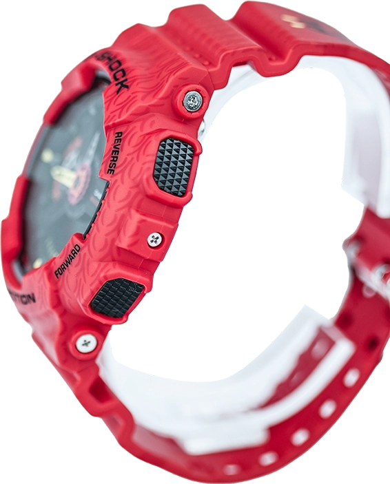 Nằm trong bộ sưu tập đặc biệt ấy, GA-110SGH-4ADR khoác lên mình màu áo đỏ rực rỡ cùng chữ “TÍN” tại nắp đáy.