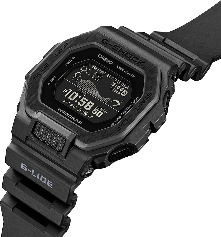 Dòng G-LIDE của Casio được ra mắt với mục đích phục vụ cho những anh chàng đam mê bộ môn lướt sóng, với những tính năng độc đáo mà bạn ít gặp được ở những sản phẩm khác trên thị trường.