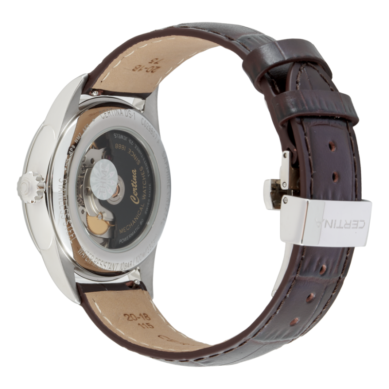 Certina trang bị cho C029.807.16.031.01 kính sapphire bảo vệ ở cả mặt trước và mặt sau. Nếu như lớp kính ở mặt trước được phủ chống lóa để mang lại góc nhìn tốt thì lớp kính sapphire ở mặt sau lại đem tới cho người dùng cơ hội quan sát chuyển động của bộ máy tự động phía bên trong của đồng hồ. Mức chống nước của đồng hồ là 100m, thế nên người dùng hoàn toàn có thể an tâm khi sử dụng cỗ máy của mình trong mọi điều kiện sinh hoạt thường ngày.