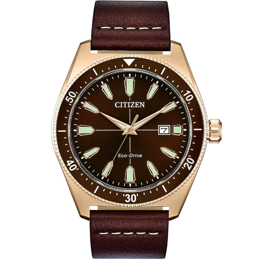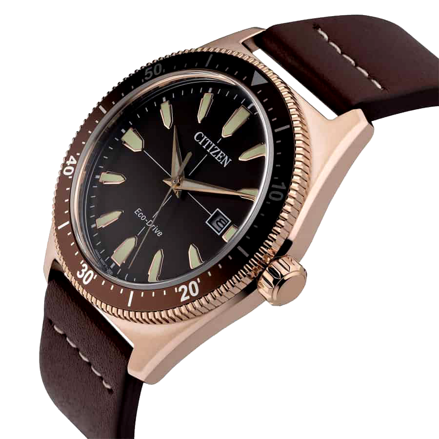 Nằm trong bộ sưu tập đồng hồ nam Vintage Brycen Sport, AW1593-06X là một trong những sản phẩm tiêu biểu giúp Citizen mang đến cho người hâm mộ một khái niệm mới về những chiếc đồng hồ thể thao. Loại bỏ những chi tiết hầm hố, AW1593-06X là một chiếc đồng hồ mang phong cách thể thao đa dụng bởi được “lai” với phong cách Dresswatch giúp sản phẩm có thể hoàn toàn có thể sử dụng trong mọi trường hợp đồng thời kết hợp được với nhiều loại trang phục khác nhau kể cả thời trang công sở lịch sự, sang trọng. Citizen đã rất tinh tế khi lựa chọn tông màu nâu đỏ độc đáo và lạ mắt để thu hút sự chú ý cho AW1593-06X. Mặt số và bezel răng cưa cùng tông và được hoàn thiện ở cấp độ cao hơn với những đường vân sunburst tỏa ra từ phía trung tâm. Bên cạnh đó, Citizen đã tận dụng triệt để phong cách tối giản để phô diễn một dial đơn giản nhưng vẫn rất mạnh mẽ và cứng cáp với các chi tiết như bộ kim dauphine khỏe khoắn, cọc số to bản đều được phủ dạ quang. Điều này hỗ trợ người dùng xem giờ dễ dàng kể cả trong điều kiện thiếu sáng. Ngoài vẻ ngoài ấn tượng, AW1593-06X cũng được trang bị bộ máy Eco – Drive với công nghệ tiên tiến nhất thế giới và độc quyền từ Citizen hoạt động dựa trên năng lượng được chuyển hóa từ ánh sáng từ bất kỳ nguồn sáng này. Điều này cho phép nó dự trữ năng lượng rất tốt và có thể sử dụng trong khoảng từ 6 - 8 tháng nếu sạc đầy. Để tăng thêm sự thời thượng cho tổng thể, Citizen sử dụng dây da chính hãng cho AW1593-06X thấm hút tốt và ôm trọn vẹn cổ tay. Bảo vệ mặt số là lớp kính khoáng cứng có độ ổn định cao, mang nhiều ưu điểm như chống trầy tốt, khó nứt vỡ, có thể đánh bóng và làm mới qua quá trình sử dụng. Độ chống nước đạt 10ATM hỗ trợ chủ nhân kể cả khi tham gia các hoạt động thể thao dưới nước như bơi lội, chèo thuyền…