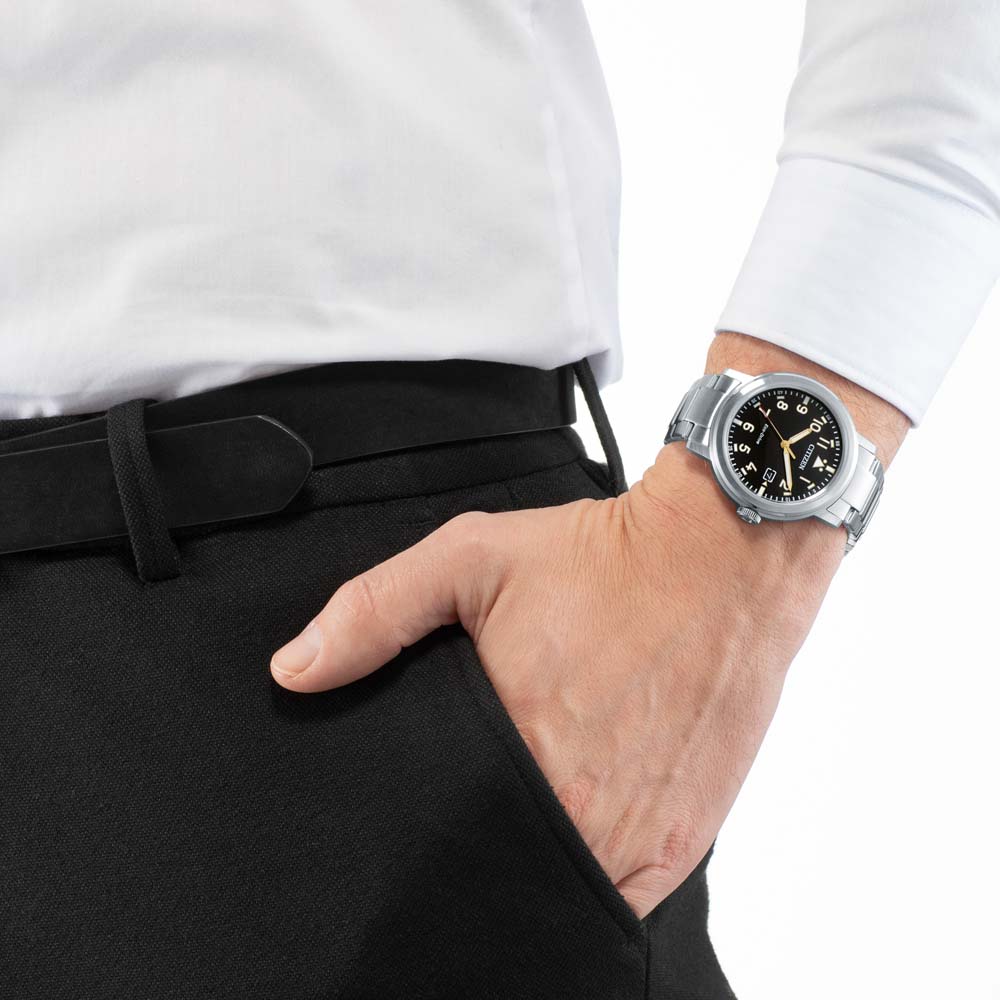 Nằm trong bộ sưu tập dành cho phái mạnh, Citizen AW1620-81E thu hút người hâm mộ bởi sự thực dụng và nam tính, sẽ giúp chủ nhân tự tin khẳng định mình khi tiếp xúc với người xung quanh. Sản phẩm sở hữu bộ case và dây đeo màu trắng bạc được chế tác từ thép không gỉ 316L vừa bền bỉ, vừa giúp AW1620-81E luôn giữ được sự sáng đẹp ở mọi góc nhìn. Đến từ thương hiệu đình đám Nhật Bản, từng chi tiết của AW1620-81E đều được hoàn thiện chỉn chu, đặc biệt trong số đó là phần mặt số. Vẫn là hình dáng tròn truyền thống, Citizen sử dụng nền đen và các cọc số Arab với kích thước lớn giúp tôn lên sự mạnh mẽ của tổng thể. Vị trí 12h được thay thế bằng một hình tam giác đều điển hình của dòng đồng hồ phi công. Bộ kim Dauphine khỏe khoắn và được phủ một lớp dạ quang nâng trải nghiệm người dùng kể cả trong điều kiện thiếu sáng. Ô cửa sổ ngày nhỏ nhắn tại vị trí 3h giúp các chủ nhân dễ dàng bao quát được thời gian. Ngoài vẻ ngoài ấn tượng, AW1620-81E cũng được trang bị bộ máy Eco – Drive với công nghệ tiên tiến nhất thế giới và độc quyền từ Citizen, hoạt động dựa trên năng lượng được chuyển hóa từ ánh sáng từ bất kỳ nguồn sáng này. Điều này cho phép cỗ máy dự trữ năng lượng rất tốt và có thể sử dụng trong khoảng từ 6 - 8 tháng nếu sạc đầy. Bảo vệ mặt số là lớp kính khoáng cứng có độ ổn định cao, mang nhiều ưu điểm như chống trầy tốt, khó nứt vỡ, có thể đánh bóng và làm mới qua quá trình sử dụng. Độ chống nước đạt 10ATM hỗ trợ chủ nhân kể cả khi tham gia các hoạt động thể thao dưới nước như bơi lội, chèo thuyền…