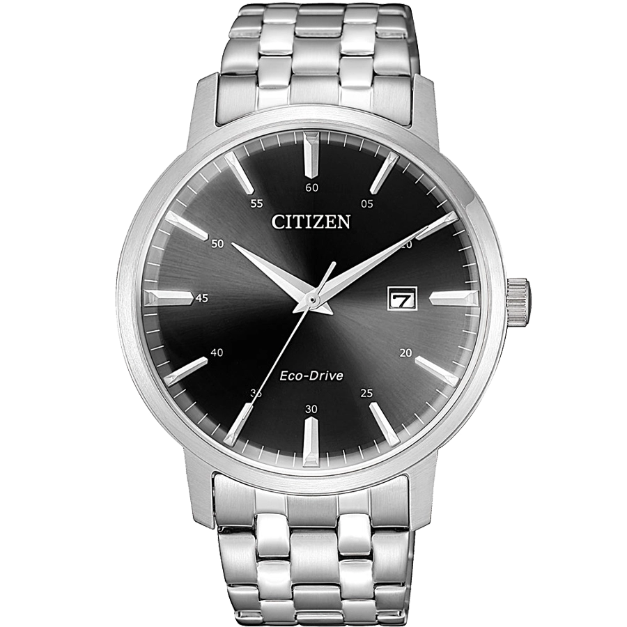 Đồng hồ nam Citizen BM7460-88E được giới hâm mộ săn đón nhờ đường nét khoẻ khoắn phù hợp với những quý ông hiện đại. Vẫn là mặt số dạng tròn quen thuộc cùng với kích thước 40mm vừa vặn với cổ tay phái mạnh, Citizen vẫn biết cạnh tạo điểm nhấn khi sử dụng tông màu đen xám mạnh mẽ cùng hoạ tiết chải tia sunray ấn tượng cho mặt số có phần tối giản của BM7460-88E. Bộ kim cùng cọc số tỉa tót vô cùng tinh tế và được mạ trắng bạc nổi bật trên nền dial tối màu vừa giữ độ thoáng cho tổng thể, vừa giúp làm toát lên toàn bộ phong thái lịch lãm và thần thái sang trọng của chủ sở hữu. Khu vực 3 giờ là ô lịch ngày được đặt với kích thước nhỏ gọn đủ để các quý ông có thể sắp xếp được các công việc cũng như lịch trình hằng ngày sao cho hợp lý. Bảo vệ được toàn bộ phần mặt số là mặt kính Mineral Crystal có khả năng chịu lực tốt, nhờ vậy mà vẻ đẹp hoàn hảo của BM7460-88E được duy trì. Ngoài ra, sản phẩm này cũng nổi bật ở chất lượng khu được sử dụng công nghệ hiện đại Eco Drive độc quyền của Citizen, đạt chuẩn Japan Movt, cho phép người dùng có thể an tâm nạp năng lượng trên sản phẩm bằng bất kỳ nguồn ánh sáng nào. Công nghệ này cũng có tính năng tích hợp và chuyển tiếp năng lượng vào pin để tích trữ giúp các chàng trai có thể yên tâm sử dụng mà không lo hết pin. Bộ vỏ và dây đeo kim loại hiện đại được chế tác từ chất liệu 316L bền bỉ và có khả năng chống va đập tốt. Khả năng chống nước đạt 5ATM cũng là những ưu điểm của BM7460-88E giúp người dùng thoải mái sử dụng trong cuộc sống hàng ngày.