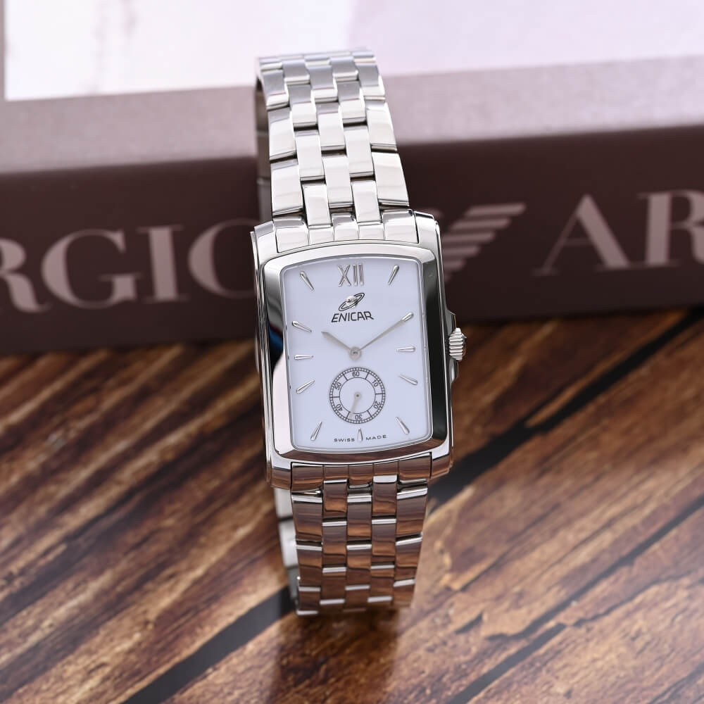 Enicar luôn mang đến những điều đặc biệt cho sản phẩm của mình, những mẫu đồng hồ thanh lịch, mỏng, nhẹ luôn là tiêu chí hàng đầu khi đưa vào các thiết kế. 266/32/25AA với thiết kế mỏng nhẹ, mặt chữ nhật đặc biệt cùng thiết kế thép không gỉ toàn bộ khiến cho mẫu đồng hồ này trở nên ấn tượng.