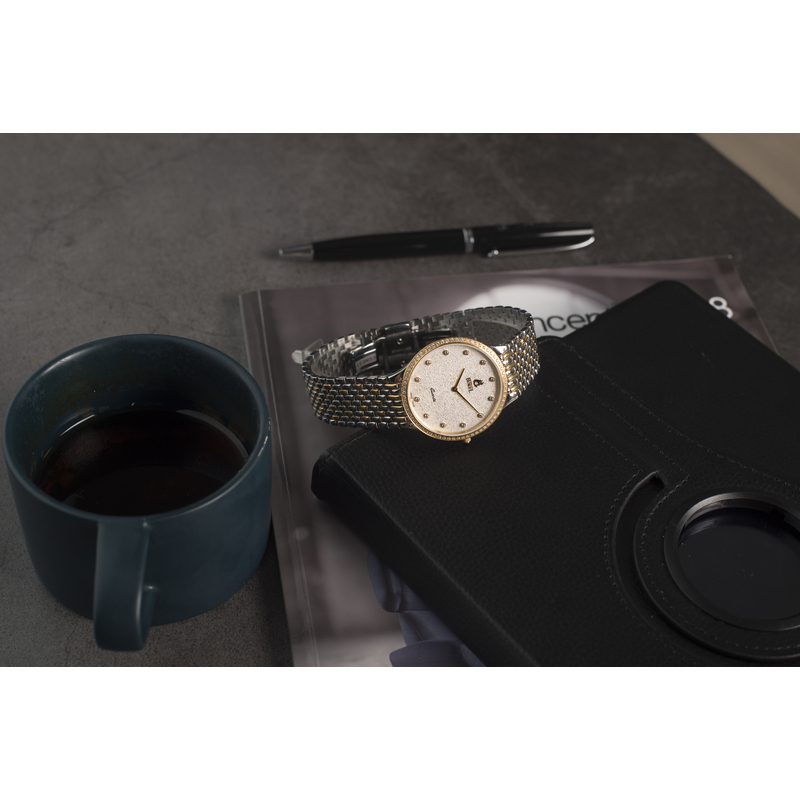 Một sản phẩm vô cùng đặc biệt trong Classic Collection của Ernest Borel chính là GB706ND-2999. Mẫu đồng hồ sở hữu phong cách thiết kế hiện đại với vỏ và dây đeo được gia công mỏng, nhẹ, uyển chuyển trong từng mắt xích nối nhau với chất liệu sử dụng từ thép không gỉ tiêu chuẩn 316L. Size mặt phổ thông 42mm thích hợp với nhiều kiểu cổ tay khác nhau. Tông màu đờ - mi làm chủ đạo kết hợp với vành và cọc số đính đá Swarovski nhằm tăng thêm tính thẩm mỹ và sự sang trọng cho sản phẩm. Bao bọc cho mặt số hiển thị là lớp kính sapphire cao cấp có độ chống xước cao. Mẫu đồng hồ có nét đơn giản với phần hiển thị 2 kim ( kim giờ, kim phút ), thiết kế thanh mảnh cùng biểu tượng quen thuộc là logo hình cặp đôi đang nhảy múa đầy mê hoặc và quyến rũ. Trái tim của GB706ND-2999 là cỗ máy Quartz swiss made bền bỉ và chính xác.