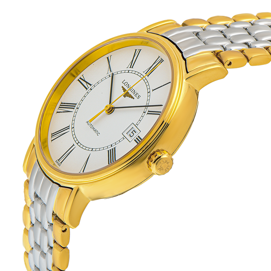 Trong các bộ sưu tập đã được Longines cho ra mắt, Presence được đông đảo giới hâm mộ đón nhận với sản phẩm mang mang vẻ đẹp vượt thời gian mà đồng hồ Nam Longines Presence L4.922.2.11.7 là tiêu biểu trong số đó. L4.922.2.11.7 tạo sự ấn tượng bằng bộ vỏ demi được mạ vàng đan xen với trắng bạc, làm tôn lên nét thanh lịch của chủ nhân. Mặt số được thiết kế tối giản với các cọc số La Mã cổ điển, bộ kim chỉ giờ dạng mảnh tạo độ thoáng cho tổng thể. Logo đồng hồ cát có cánh được Longines trịnh trọng đặt tại vị trí 12 giờ - dấu hiệu khẳng định tên tuổi và chất lượng của thương hiệu được xem là trụ cột trong ngành công nghiệp đồng hồ Thụy Sỹ. Cửa sổ ngày nhỏ nhắn thay thế cho cọc số 3 giờ tạo sự tiện lợi cho người sử dụng.