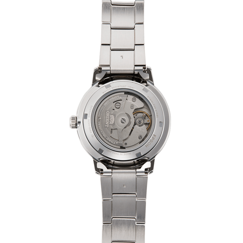 Một trong những chi tiết đáng chú ý trên Orient RA-AC0E02S30B là thiết kế đáy lộ máy. Phần nắp đáy sử dụng kính cứng, kết hợp cấu trúc đáy vặn, cho phép người đeo quan sát trực tiếp chuyển động của bộ máy cơ bên trong.