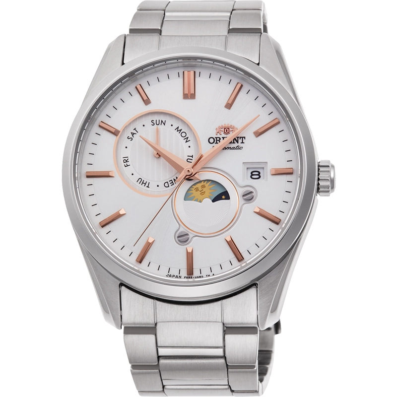 Đồng hồ Orient chính hãng không còn xa lạ với những tay chơi đồng hồ trên thế giới nói chung và dân sành đồng hồ tại Việt Nam nói riêng. Những sản phẩm với mẫu mã sang trọng, được chế tác từ những nguyên liệu đẳng cấp, hoàn hảo nhất cùng những tính năng ưu việt đã thực sự gây ấn tượng sâu đậm trong tâm trí người tiêu dùng từ những ngày đầu tiên cho tới tận bây giờ. Dòng đồng hồ Orient Sun and Moon (Orient Sun & Moon) được giới thiệu lần đầu vào năm 2014. Chúng thuộc phân khúc cao cấp của hãng Orient, Nhật Bản. Hầu hết các mẫu vận hành bằng máy Automatic và có chức năng Sun and Moon cho biết thời gian Ngày hay Đêm đặc trưng. Dòng sản phẩm tái hiện lại hình ảnh của Mặt Trời và Mặt Trăng, Sun and Moon được xem là một trong những chức năng đồng hồ đẹp thanh lịch nhất thế giới. Bởi thế, không có gì ngạc nhiên khi dòng đồng hồ này nhanh chóng trở thành sản phẩm ăn khách hàng đầu của Orient.