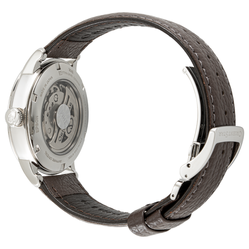 - Bộ máy In-house F7H44 chất lượng cao: Sản phẩm được trang bị bộ máy cơ tự động do chính Orient Star nghiên cứu và sản xuất tại Nhật Bản, đảm bảo độ chính xác ổn định từ +15 giây đến –5 giây mỗi ngày.