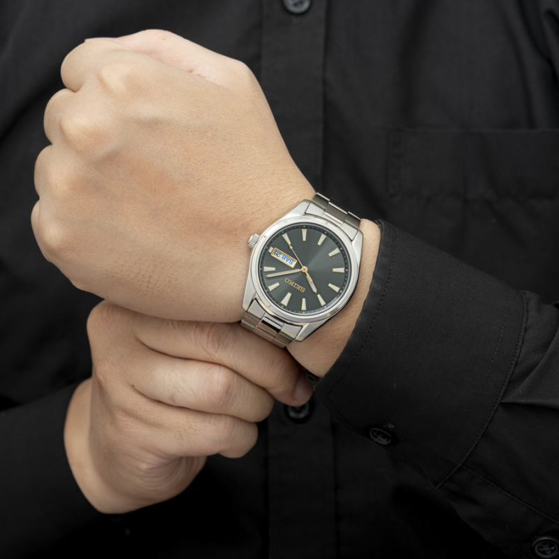 Vỏ và dây đeo đồng hồ được chế tác từ chất liệu thép không gỉ cao cấp, bền bỉ, chống chịu sự ăn mòn khi tiếp xúc với môi trường bên ngoài. Bộ kim và cọc số được sơn phủ một lớp dạ quang giúp người dùng sử dụng trong điều kiện thiếu sáng. Khung cửa sổ hiển thị lịch thứ ngày được thiết kế ở vị trí 3h, vị trí thuận tiện cho việc theo dõi thời gian.