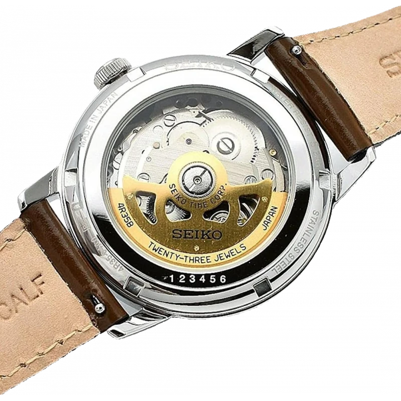 Seiko SRPE45J1 được trang bị bộ máy tự động Calibre 4R35 mang đến bộ tứ ưu điểm vượt trội: chính xác, bền bỉ, ít bảo dưỡng, tiết kiệm năng lượng với 23 chân kính, thời gian trữ cót lên đến 41 giờ. Nhờ cỗ máy này, Seiko SRPE45J1 còn sở hữu chức năng lên cót tay và dừng kim giây rất được ưa chuộng bởi giới chơi đồng hồ tại Việt Nam. Khả năng chịu nước của Seiko SRPE45J1 là 5ATM cho phép sử dụng khi rửa tay hoặc trời mưa nhỏ.
