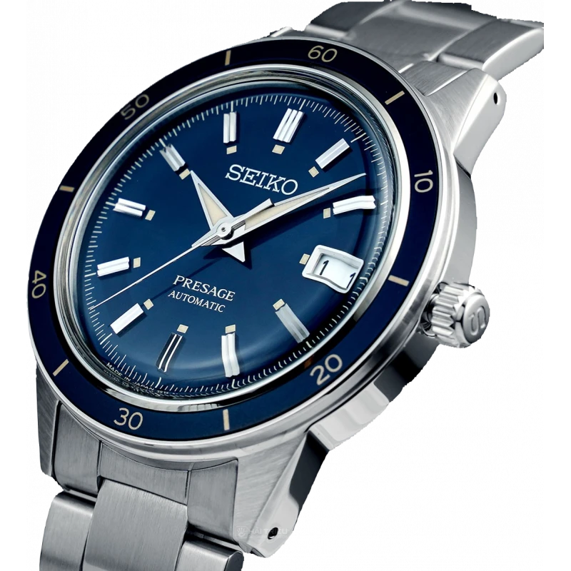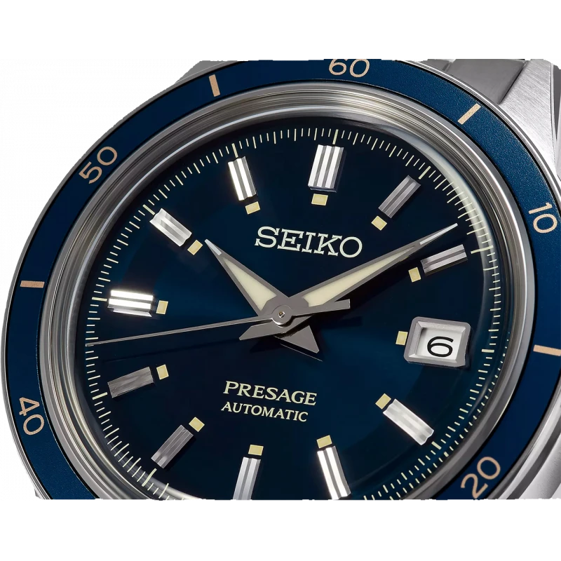 SRPG05J1 nằm trong bộ sưu tập Style 60’s mang trên mình tone màu đương đại với vỏ kim loại và viền benzel xanh blue được mô tả thiết kế cổ điển của dòng Crown Chronograph nguyên bản của sáng tạo năm 1964. Bộ kim và cọc số dạ quang được phủ bạc nổi bật trên mặt số xanh cùng tone bộ vỏ, mang đến cảm giác hoài cổ hoàn hảo cho bất kỳ quý ông nào sở hữu.