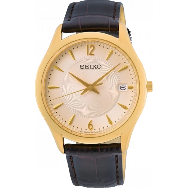 Đồng hồ nam Seiko SUR472P1 với đường kính 39,4mm là mẫu đồng hồ nằm trong dòng sản phẩm Regular được phái nam ưa chuộng. Với thiết kế thanh lịch, phần vỏ được làm từ thép không gỉ mạ vàng PVD, dây da bò màu đen nâu khiến cho tổng thể của SUR472P1 càng thêm ấn tượng.