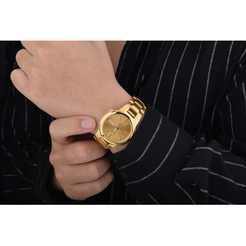 Vẻ đẹp sang trọng và quý phái giúp SNKA10K1S trở thành món phụ kiện được lựa chọn hàng đầu của các nam giới, đặc biệt là những tín đồ đam mê đồng hồ đeo tay thương hiệu Seiko - Nhật Bản. Đúng với tiêu chí dành cho những quý ông, SNKA10K1S sử dụng tông vàng làm chủ đạo ở cả dây, vỏ và mặt số đồng hồ qua công nghệ mạ cao cấp PVD. Mặt kính cứng giảm tối đa sự trầy xước khi va đập. Vỏ của đồng hồ được làm từ thép không gỉ 316L có đường kính 37mm và độ dày 11m. Đồng hồ có sức chịu áp lực nước lên đến 3ATM. Đặc biệt ở SNKA10K1S, núm đồng hồ được đặt cố định tại góc 4h, giúp việc chỉnh giờ và lịch khi đang đeo trên tay trở nên tiện dụng hơn bao giờ hết.