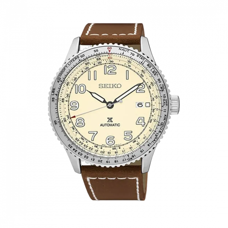 Bộ sưu tập Seiko Prospex còn chia ra 3 bộ sưu tập nhỏ gây được tiếng vang lớn: Seiko Prospex Sea (biển), Seiko Prospex Sky (bầu trời), Seiko Prospex Land (đất). Nằm trong dòng sản phẩm Seiko Prospex Sky, SRPB59K1 hội tụ đầy đủ những vẻ đẹp và tính năng cần thiết của một chiếc đồng hồ phi công: thiết kế tạo chiều sâu ở mặt số khi sử dụng tinh thể Hardlex cong, phần hiển thị bộ kim và cọc số dễ đọc giờ, tiện lợi cho việc quan sát thời gian khi di chuyển trên không. Vành đồng hồ được thiết kế tính năng chuyên dụng cho việc đo đạc thời gian một cách chi tiết, chuyên dụng cho giới phi công hay những khách hàng thường xuyên di chuyển bằng máy bay.