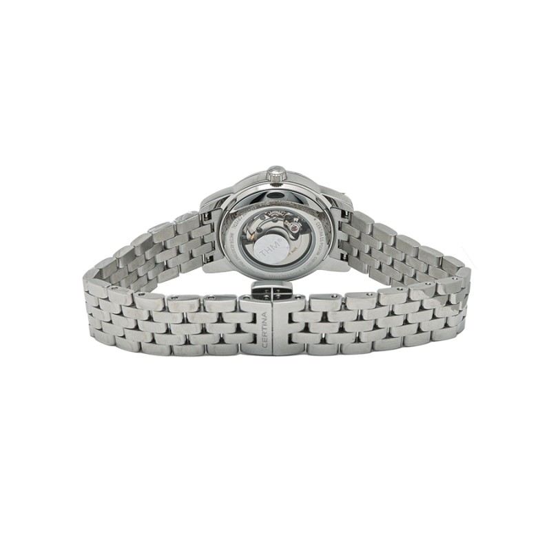 Trái tim của C001.007.11.013.00 là cỗ máy tự động ETA tới từ tập đoàn Swatch Group có độ chính xác và bền bỉ cực cao.Được trang bị mặt kính sapphire cùng độ chịu nước lên tới 10ATM cho phép bạn thoải mái sử dụng trong các hoạt động hàng ngày như tắm, bơi...Dây đeo được làm từ thép không gỉ 316L với dạng mắt nhỏ tạo cảm giác mềm mại và ôm khít cổ tay.Vẻ ngoài đầy nữ tính, C001.007.11.013.00 sẽ là lựa chọn hoàn hảo để tôn lên nét đẹp cho phái nữ. Hãy tới với các điểm bán của Certina thuộc hệ thống Galle để trên tay và trải nghiệm mẫu đồ