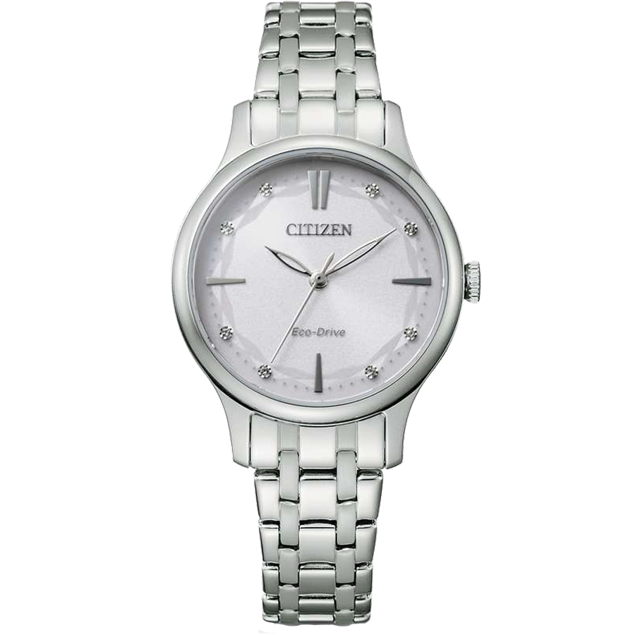Nằm trong bộ sưu tập dành cho phái đẹp với những mẫu sản phẩm vô cùng nữ tính, không quá ngạc nhiên khi Citizen EM0890-85A được đại đa số phái đẹp “yêu ngay từ cái nhìn đầu tiên”. Sử dụng tông trắng bạc làm màu sắc chủ đạo kết hợp với lối thiết kế tối giản đã mang đến cho EM0890-85A vẻ đẹp thanh lịch và tinh tế, có thể kết hợp hoàn hảo với bất kỳ bộ trang phục nào của các quý cô. Sản phẩm vẫn sử dụng mặt số tròn truyền thống nhưng được Citizen tạo điểm nhấn bằng cách đính 8 viên pha lê lấp lánh tương ứng 8 múi giờ hiển thị. Trên nền dial trắng kích thước 30mm, bộ kim được tạo dáng thanh mảnh và các hoạ tiết cánh hoa mềm mại kết nối các cọc số cũng là những chi tiết đặc biệt giúp tôn lên vẻ nữ tính cho tổng thể. Dây đeo của đồng hồ sử dụng màu trắng làm chủ đạo giúp đồng hồ càng tôn lên vẻ đẹp thanh lịch vốn có, kèm theo bộ khóa bấm thuận tiện và an toàn. Citizen sử dụng hoàn toàn chất liệu thép không gỉ 316L trong chế tác giúp phần dây và vỏ nhằm giữ được độ sáng bóng, bền đẹp của sản phẩm theo thời gian. Đặc biệt, loại nguyên liệu này không gây kích ứng da tay, kể cả với những làn da nhạy cảm nhất. Sở hữu đường kính 30mm nhỏ xinh phù hợp với mọi cổ tay người phụ nữ Á Đông cùng độ chịu nước lên tới 50M, mẫu đồng hồ này giúp nàng thoải mái trong những sinh hoạt thường ngày. Trái tim của EM0890-85A chính là bộ máy năng lượng ánh sáng Eco-Drive chạy chính xác và được bảo hành 1 năm quốc tế.
