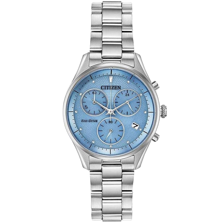 Thuộc bộ sưu tập Citizen Chandler Chronograph Ladies, FB1440-57L với vẻ ngoài cổ điển pha chút nữ tính sẽ là sự lựa chọn hoàn hảo dành cho phái đẹp để sử dụng hàng ngày. Sản phẩm sở hữu bộ case và dây đeo kim loại màu trắng bạc được chế tác từ thép không gỉ 316L giúp đồng hồ luôn bền bỉ và bóng bẩy ở mọi góc nhìn. Điểm nhấn ấn tượng nhất ở chiếc đồng hồ này đến từ mặt số xanh dương nhạt bắt mắt. FB1440-57L được trang bị chức năng chronograph với 3 ô mặt số phụ được bố cục hài hòa và dễ nhìn. Ô cửa sổ ngày nhỏ nhắn tại vị trí 4h giúp phái đẹp dễ dàng theo dõi thời gian. Không chỉ ngoại hình bắt mắt, Citizen FB1440-57L còn sở hữu bộ máy Eco-Drive có khả năng chuyển hóa ánh sáng thành năng lượng hoạt động và tích trữ vào viên pin để sử dụng lâu dài. Các nàng không phải lo hết pin trong quá trình sử dụng bởi chỉ cần sạc pin 1 lần là có thể sử dụng liên tục từ 6-8 tháng. Bảo vệ mặt số là mặt kính cường lực chống va đập cực tốt. Ngoài ra, sản phẩm này được trang bị độ chịu nước 3ATM, cho phép các cô gái có thể sử dụng khi đi mưa hoặc rửa tay.