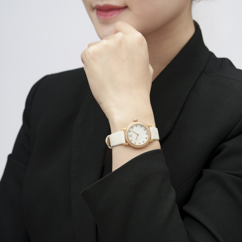 Thiết kế đậm chất nữ tính, tinh tế: Với đường kính mặt 29mm, độ dày 7mm, chiếc đồng hồ mang đến sự gọn gàng, vừa vặn, phù hợp với cổ tay phụ nữ Á Đông.