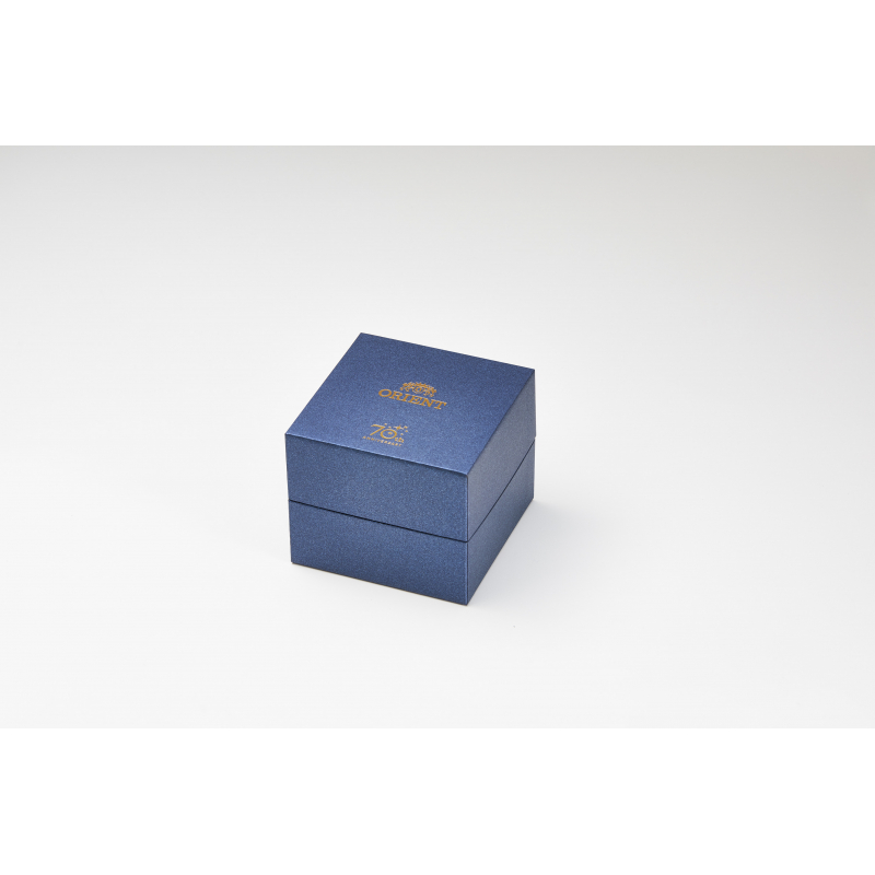 Nằm trong dòng sản phẩm Sun & Moon vô cùng ăn khách của Orient, RA-KB0005E00B càng được chú ý và săn đón khi có số lượng sản xuất giới hạn chỉ 700 chiếc trên toàn thế giới. Mẫu đồng hồ này sở hữu ngoại hình đầy ấn tượng và sang trọng, phù hợp với những quý cô yêu thích phong cách thanh lịch, tinh tế. Bộ kim Dauphine cùng cọc số dạng vạch mạ vàng nổi bật trên nền dial xanh thẫm tạo nên một thiết kế vô cùng hiện đại. Đây cũng là màu sắc chủ đạo được Orient ứng dụng trên các mẫu đồng hồ ra mắt nhân kỷ niệm 70 năm thành lập của thương hiệu. Trong khi đó, ô cửa sổ Sun & Moon đặc trưng của dòng sản phẩm được đặt gọn ở góc 6h.