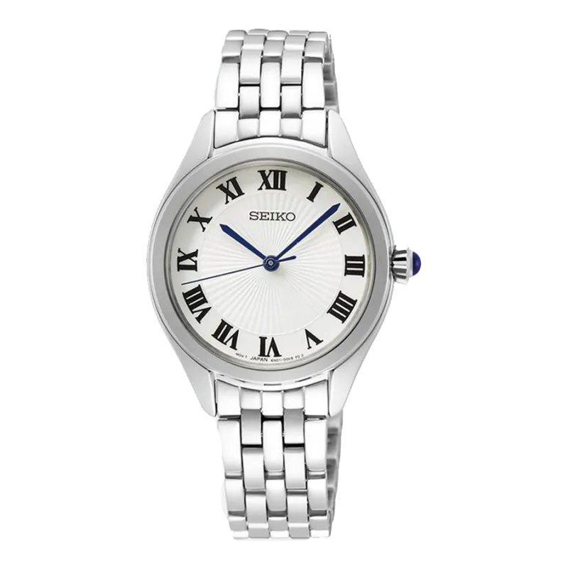Đường kính mặt số 29mm khiến chiếc Seiko SUR327P1 mang vẻ ngoài nhẹ nhàng, đơn giản, thích hợp với hầu hết mọi cô nàng.