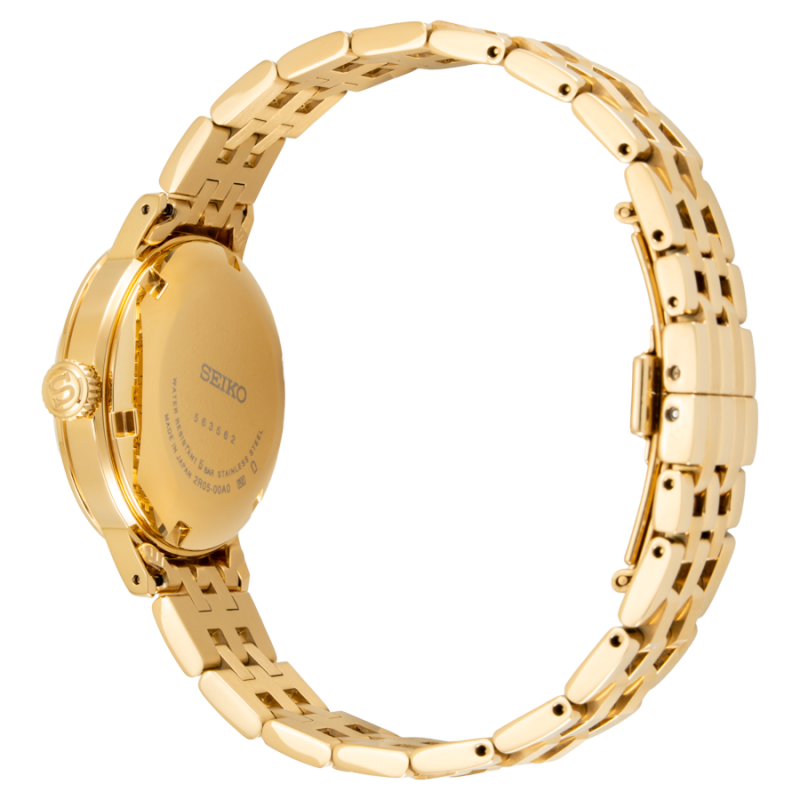 Mặt số của SRE018J1 là điểm thu hút ánh nhìn ngay từ lần đầu tiên. Hiệu ứng vân sunburst kết hợp màu sắc trang nhã giúp mặt số thay đổi sắc độ theo ánh sáng, tạo cảm giác mềm mại, nữ tính nhưng không kém phần cao cấp.