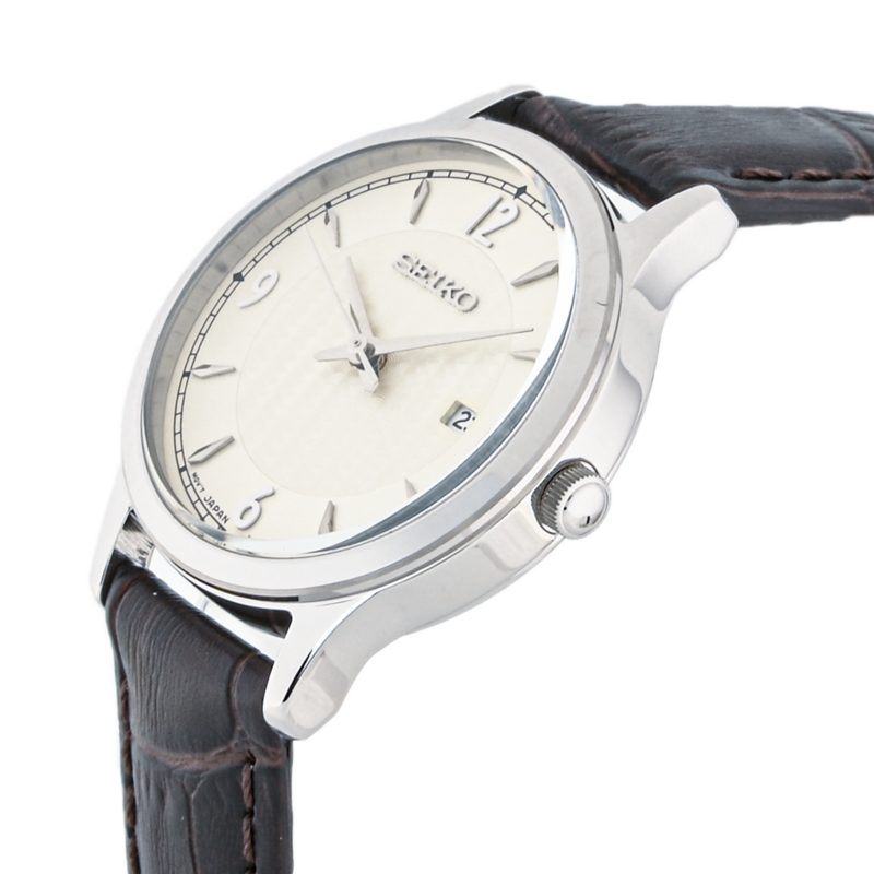 Nằm trong dòng sản phẩm Regular, SXDG95P1 là mẫu đồng hồ dành cho phái đẹp với thiết kế đơn giản, thanh lịch. Bộ case của SXDG95P1 được chế tác từ thép không gỉ 316L với đường kính mặt số 29 mm. Dial của SXDG95P1 cũng rất đơn giản với phần nền màu vỏ trứng, các cọc số thanh mảnh, riêng cọc số 3, 6, 9 và 12 giờ là dạng số học trò. Tất cả các chi tiết này đem lại cho SXDG95P1 vẻ ngoài thanh lịch, đơn giản và dễ đeo.