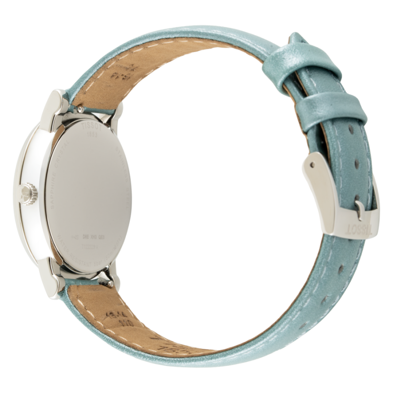 - Vẻ Đẹp Thanh Lịch, Tinh Tế: Được thiết kế dành riêng cho phái nữ, T122.223.16.353.00 mang một vẻ đẹp dịu dàng nhưng đầy cuốn hút. Từ mặt số xanh lam sâu thẳm đến dây da mềm mại, mọi chi tiết đều được chăm chút tỉ mỉ, tôn vinh nét duyên dáng của người phụ nữ.