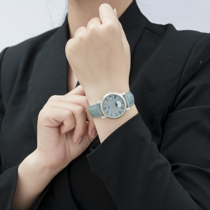 - Lịch Tuần Trăng Độc Đáo Tại Vị Trí 6 Giờ: Đây là một điểm nhấn đặc biệt của T-Classic Carson Premium. Chức năng lịch tuần trăng được bố trí tinh tế ở vị trí 6 giờ không chỉ mang tính ứng dụng cao mà còn tăng thêm vẻ đẹp lãng mạn, cổ điển cho mặt số.